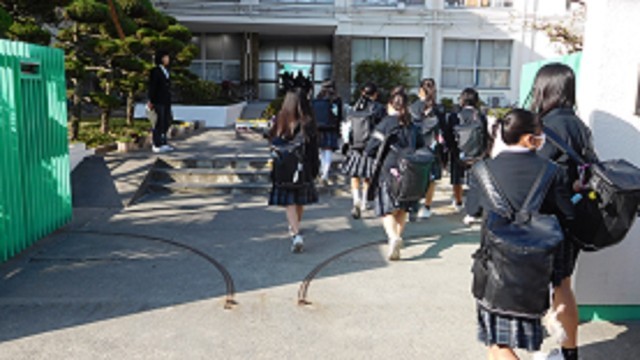 今日は普段とは違ってグラウンドでの全校集会ということもあり、先生方の声かけで走って校門を通過する生徒が多かったです。