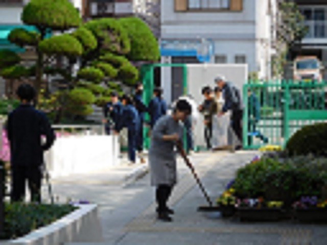 本日午前中の、入学式会場周辺整備の様子です。