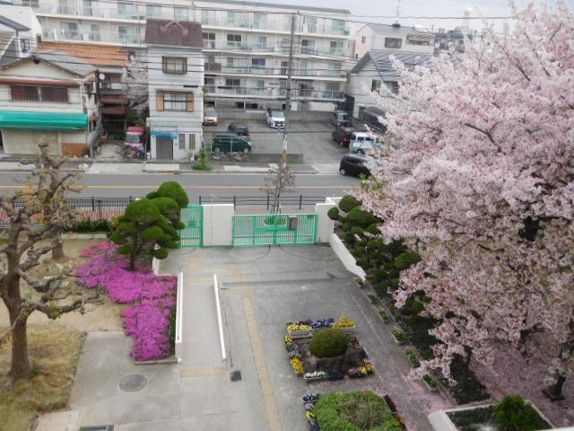 正門の桜の花びらが絨毯に!