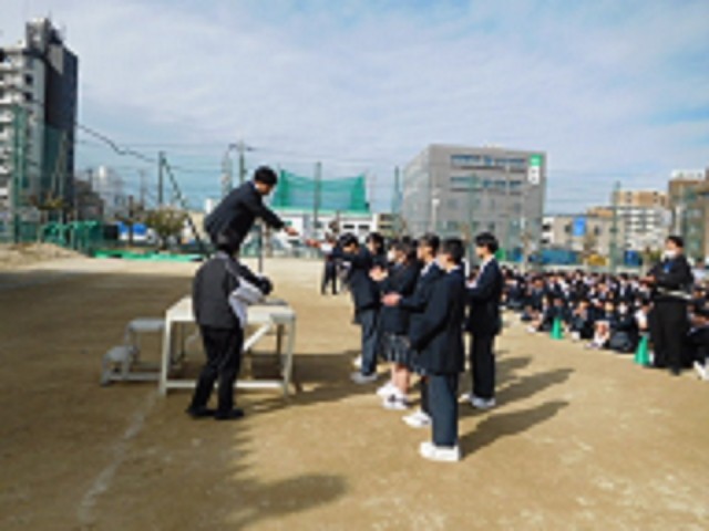 校長先生からは、「どの生徒も何かしらの役割があるので、責任をもって役割を果たしてください。各クラスの皆さんは、係生徒にしっかりと協力してあげてください。そうすることによって、一人ひとりが思い切って行動できる、安心できる空間をつくってください」とお話がありました。