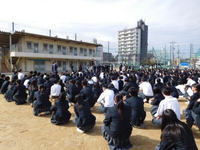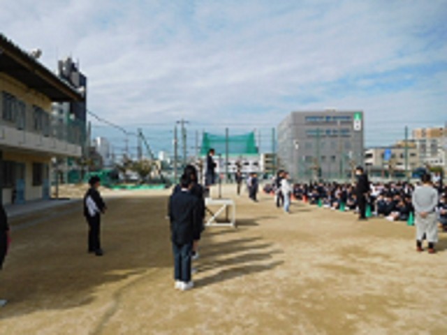 本日グラウンドにて、全校集会が行われました。