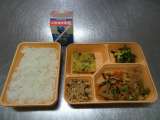 本日のメニュー:豚肉と野菜の煮もの、ひじきの厚焼き卵、小松菜と ...