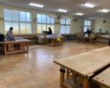 今日から、1年生SDGsの取り組みで残布を再利用して作ったランチョンマットに美術...