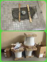 洋便器化に伴い、今日は和便器を取り除きました。 和便器はハンマーでたたき割って取...