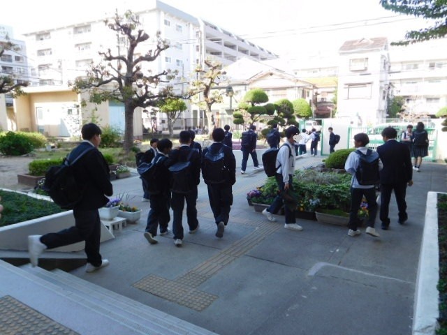 4月21日(火)本日の6時限授業が終わり下校する生徒たちです。
