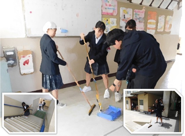 4月28日(火)本日家庭訪問日のため午前中4時限まで家に帰る前の校内清掃の様子で...