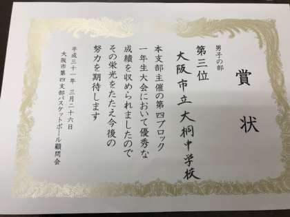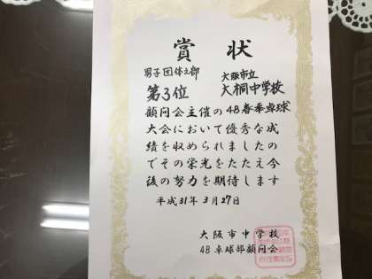 春季休業中に開催された、男子卓球部・男子バスケットボール部の大会の表彰状を伝達授与しました。