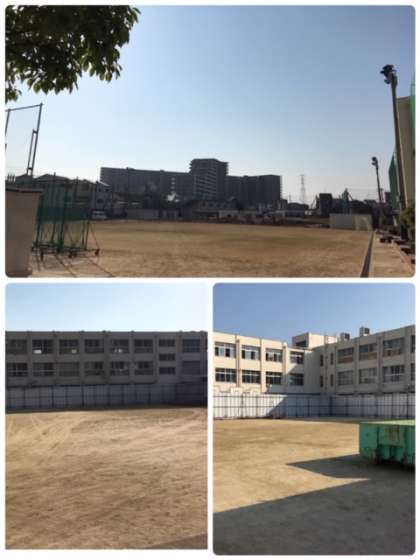 また、グランド南側の作業も多少残っていますので、工事作業現場に近寄らないよう注意してください。