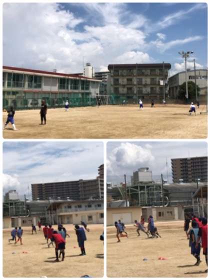 ソフトボール部とラグビー部が今日も練習に励んでいます。