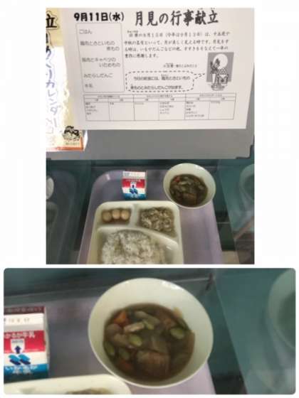 今日は、「月見の行事献立」で、「みたらし団子」が目をひくメニューでしたが、