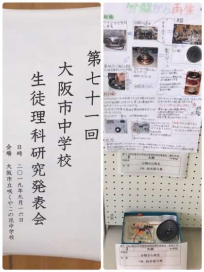「大阪市中学校理科研究発表会」が、開催され、本校からも5点の発表がありました。