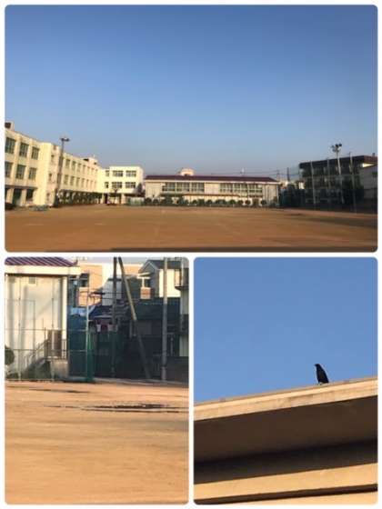 グランドには、火曜日に降った雨による水たまりがまだ残っています。