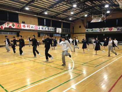 大阪高校新体育館完成を記念し、本校生徒13名が大阪高校ダンス部と合同で練習し、ビデオ撮影を行いました。およそ1時間の限られた時間でしたが、和やかで楽しいひと時となりました。