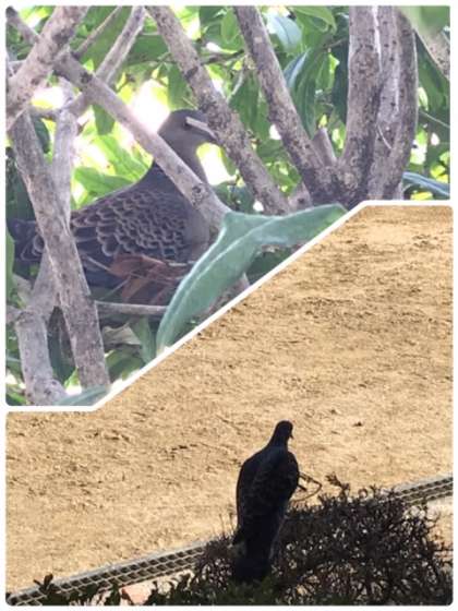 先日のハトですが、近くの立木につがいで巣作りしているようです。