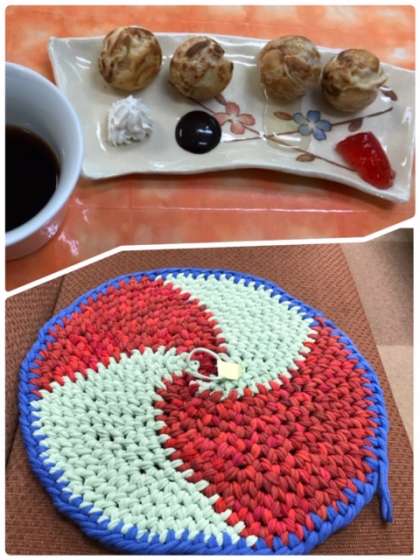 今日は、「特製カステラ(たこ焼きではありません)」のセットと「編み込み座布団」を購入させていただきました。