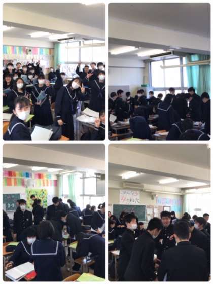 3年生は、最後の学活で、卒業アルバムにサイン会