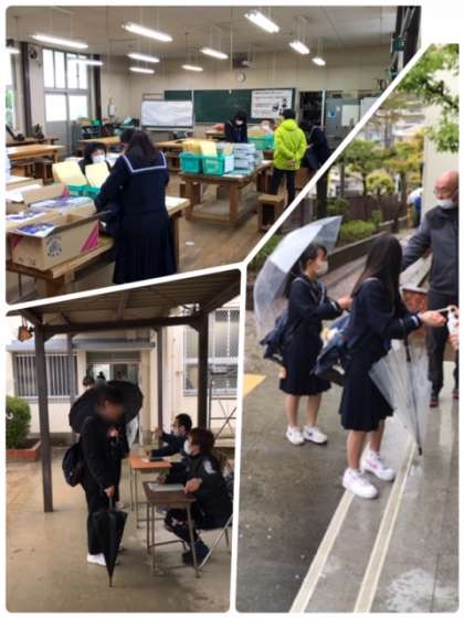 新2・3年生は、新クラスの発表とそれぞれ担任の先生から、教科書や課題、その他の配布がありました。