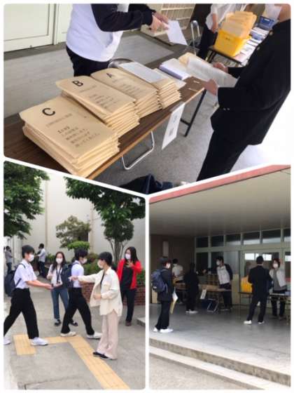2年生は、学級ごとに分散して登校し、提出物の回収と課題の配布をしました。