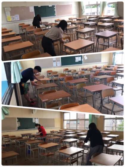 学校再開の放課後、校内隅々まで先生方が「除菌作業」をしています。