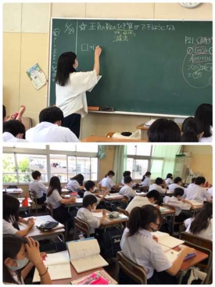 1年生は、数学の授業で、「正負の数の引き算」の学習をしました。