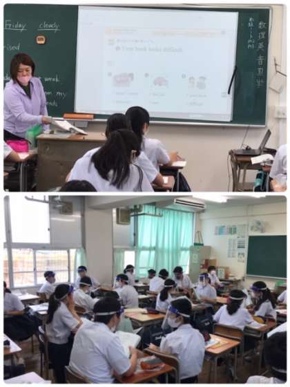 2年生は、英語の授業で「×× look 〇〇」の文例を学習していました。