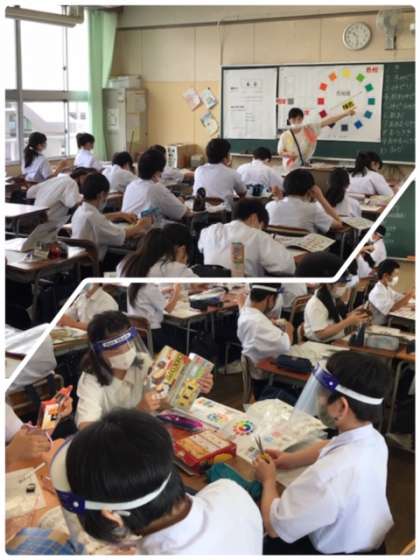 1年生は、美術の時間に「色の広がり、魅力」について学習しています。