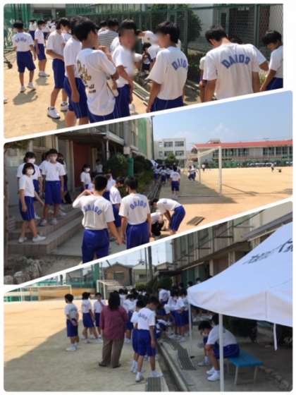部活動全部員で、普段使わせてもらっている学校のグランド側溝やトイレ・廊下を清掃しました。