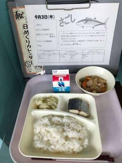 さごしの塩焼き、豚肉とジャガイモの煮物 です。