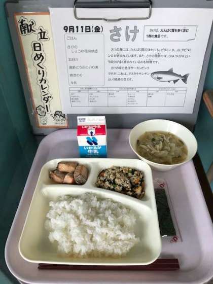 さけの醤油風味焼き、高野豆腐のいり煮 です。