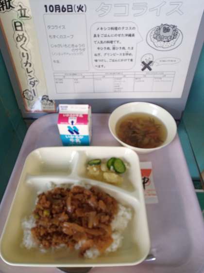 タコライスとは、メキシコ料理のタコスの具をごはんにのせた沖縄県で人気の料理だそうです。