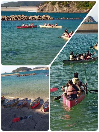 5〜6人で左右の舷に分かれ、短めのパドルを漕いでカヌーを進めます。