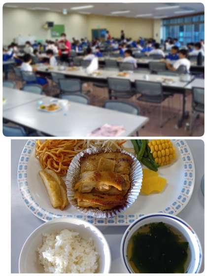 海での活動を終え、入浴を済ませて前半後半に分けての夕食です。
