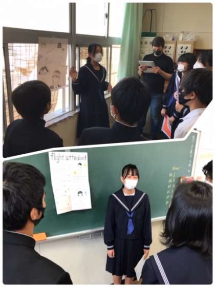 上:2年生の英語科では、英語で自己紹介プレゼンテーションに取り組んでいます。