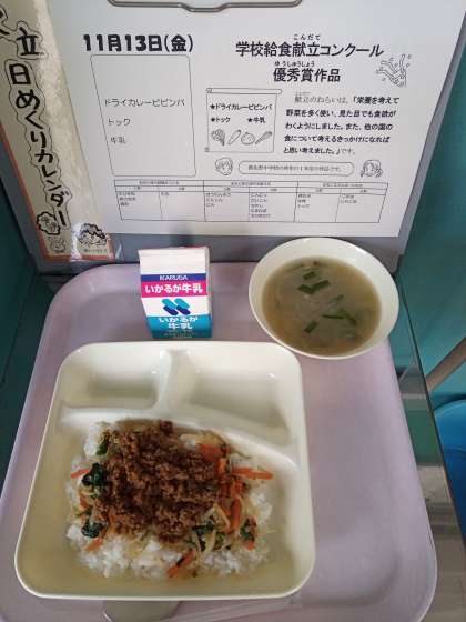 今日の献立は、何と昨年新生野中学校の1年生が応募した「学校給食献立コンクール」で優秀賞を受賞した作品だそうです。