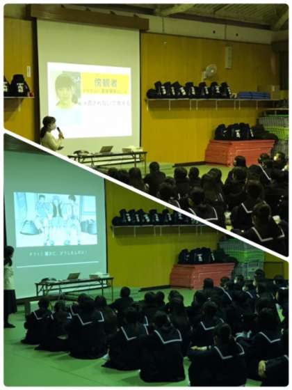 1年生は、ゲストティーチャーによる「情報モラル」の学習に取り組みました。