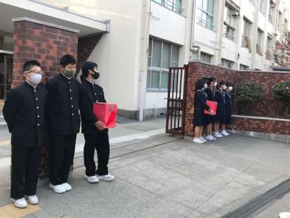 生徒会で「赤い羽根募金」に取り組んでいます。