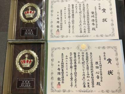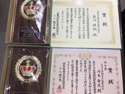 今日の放送集会で、3年生が社会の授業で取り組んだ「税の作文」で受賞した、表彰状を紹介しました。