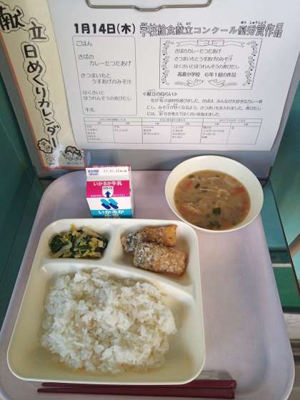 今日のメニューは、学校給食献立コンクール優秀賞作品で、高倉小学校6年1組の作品だそうです。