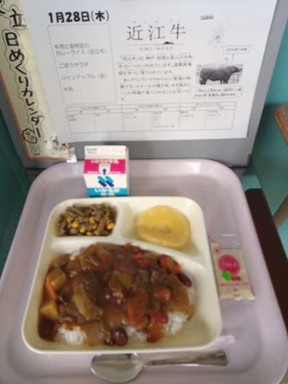 1月から3月までの(近江牛)と書かれた給食献立に使われるそうです。