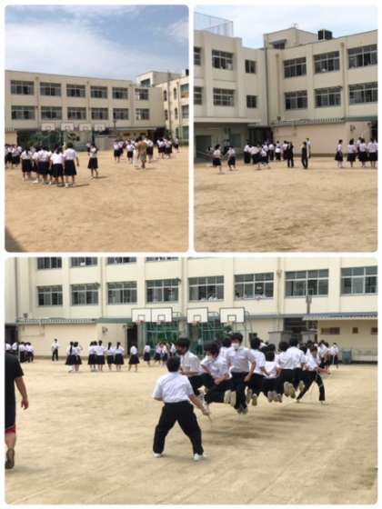 1年生は、18日(金)に開催予定の学年行事(スポーツデー)で取り組む「大縄跳び」の練習会をしています。
