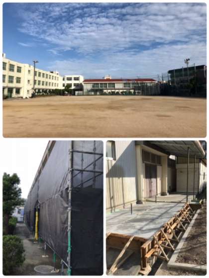 体育館の空調設置工事が夏休みからはじまっています。緊急避難場所になることを想定して、全市の小中学校に設置されます。