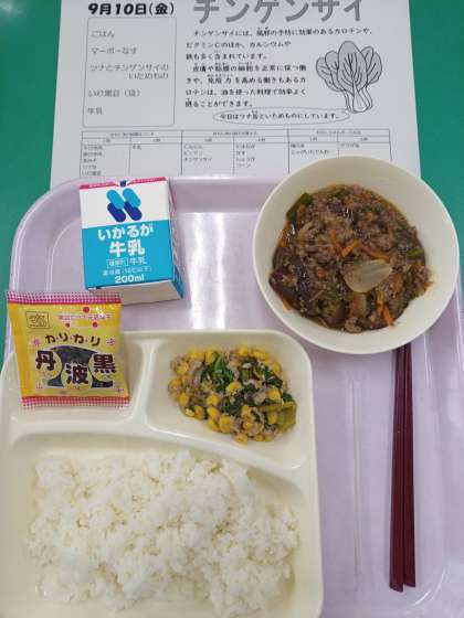 本日の給食メニューは