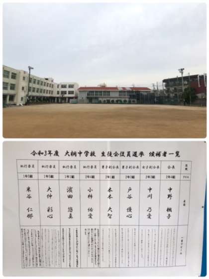 15日(水)6時間目に生徒会役員選挙があります。今年は、放送による演説会になります。どの候補者も学校のことを考えて、立候補してくれています。誠意をもって選出、信任してください。