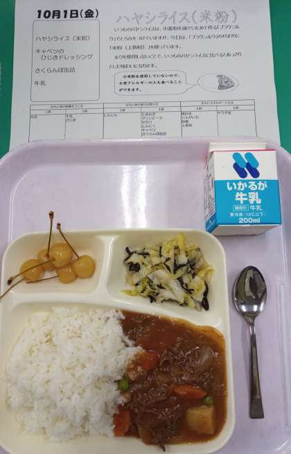 今日のハヤシライスは米粉を使っているので、いつものハヤシライスに比べるとあっさりとした味わいになるそうです。