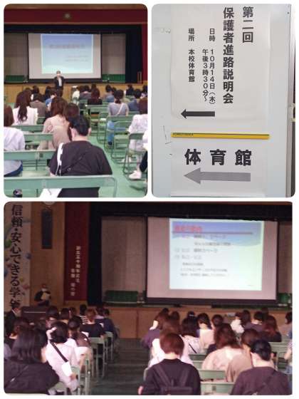 本日午後3時30分より、本校体育館にて第2回保護者進路説明会を実施いたしました。