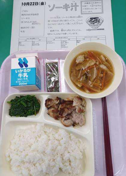 ソーキ汁は沖縄県の代表的な料理で、ソーキと呼ばれる「豚の骨つきあばら肉」とだいこん、こんぶなどを煮こんだ汁ものです。