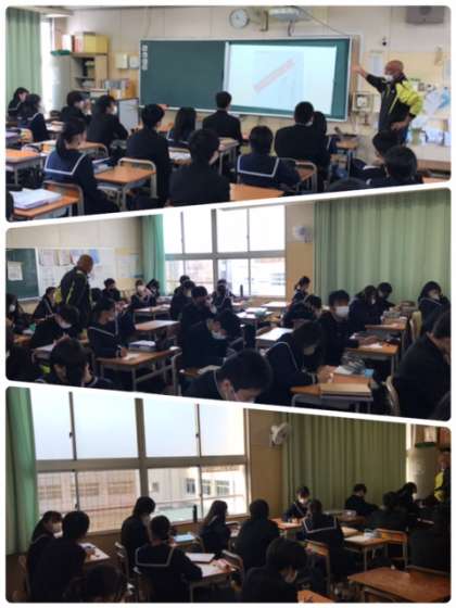 3年生の国語科では、美術科とコラボして(教科横断的学習)して、「色紙作り」に取り組んでいます。3年間の想いでを振り返り、印象に残る物を絵と文で表現する活動をしていました。