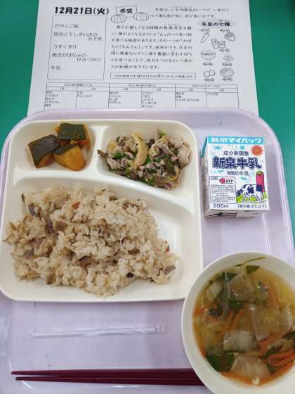 今日の給食に使われている「かぼちゃ(=なんきん)」や「にんじん」も、実はそのひとつです。