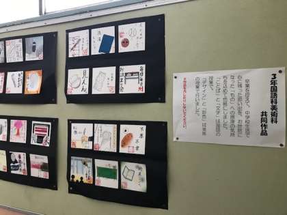 3年生では、国語科と美術科の教科横断授業として、色紙の作成をしています。