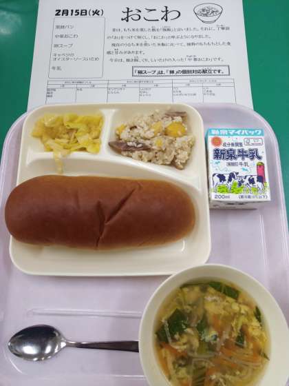 今日は、焼き豚(ぶた)、くり、しいたけが入った「中華おこわ」です。